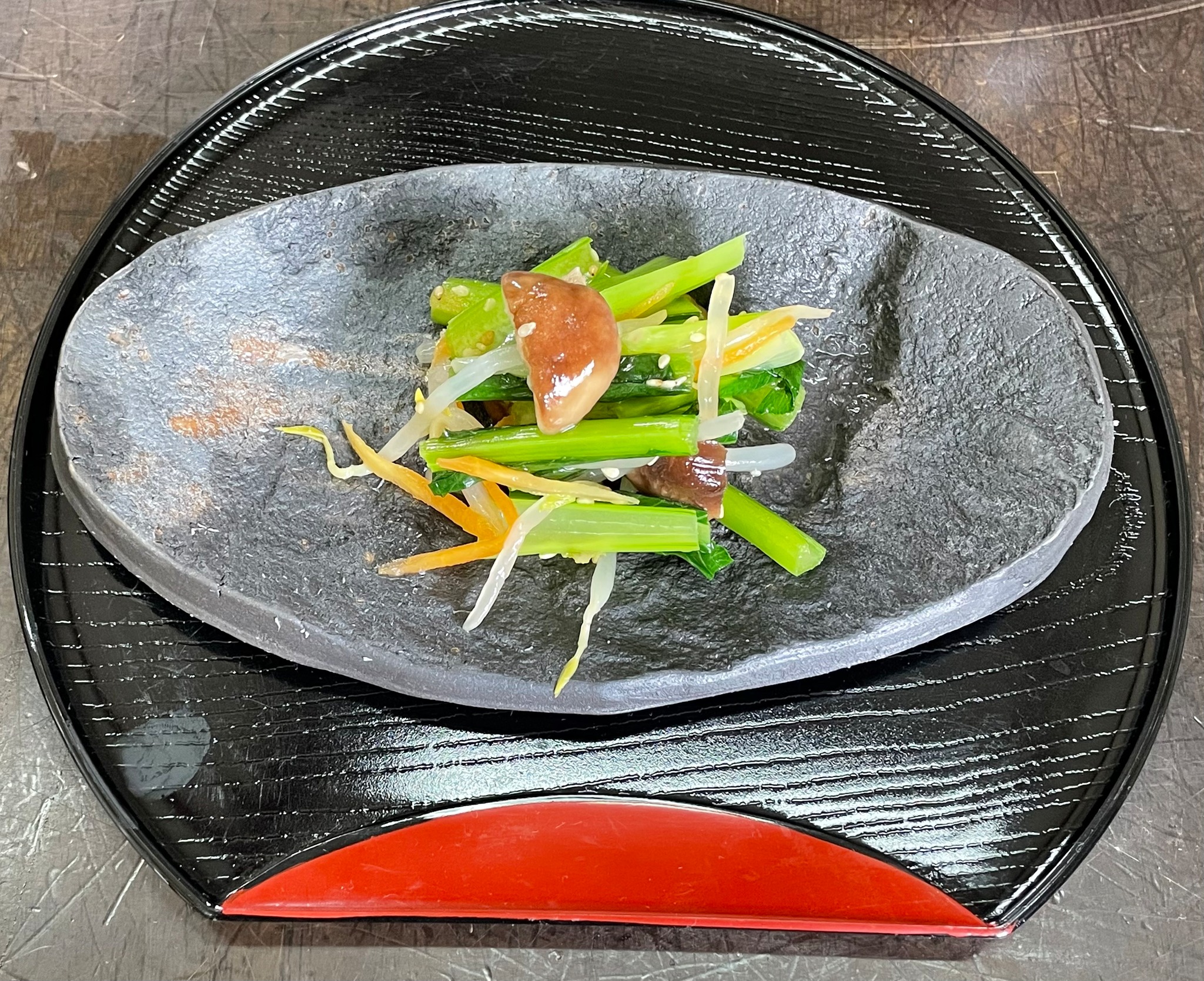 小松菜のナムルですが洋食器の様な使い方もクッキーを載せてコーヒーや紅茶☕️の隣にも如何ですか?